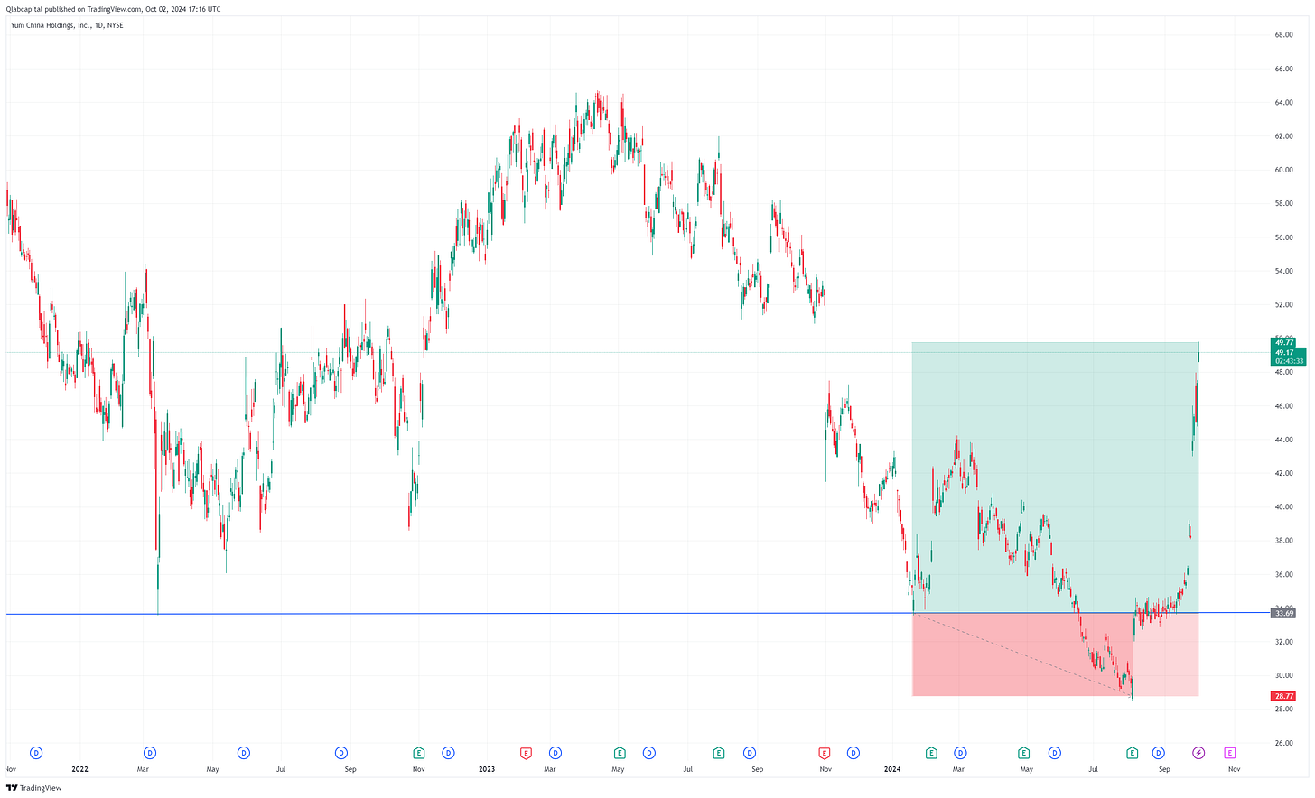 Tras el comienzo del goteo de las importantes medidas de estímulo del gobierno chino, la acción se ha disparado como un cohete, subiendo un 50% en un mes. ¿Están vendiendo los restaurantes de la marca un 50% más que hace un mes? ¿Está la economía China un 50% mejor que hace un mes?