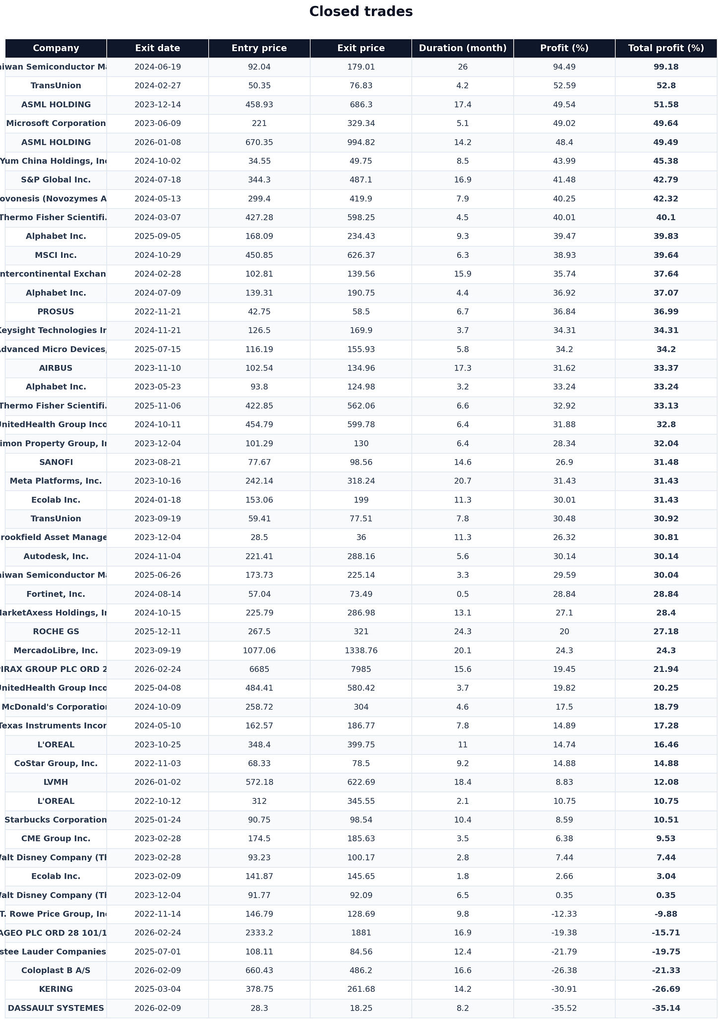 En algunas compañías he realizado más de una operación en distintos periodos de tiempo, por eso hay nombres repetidos.