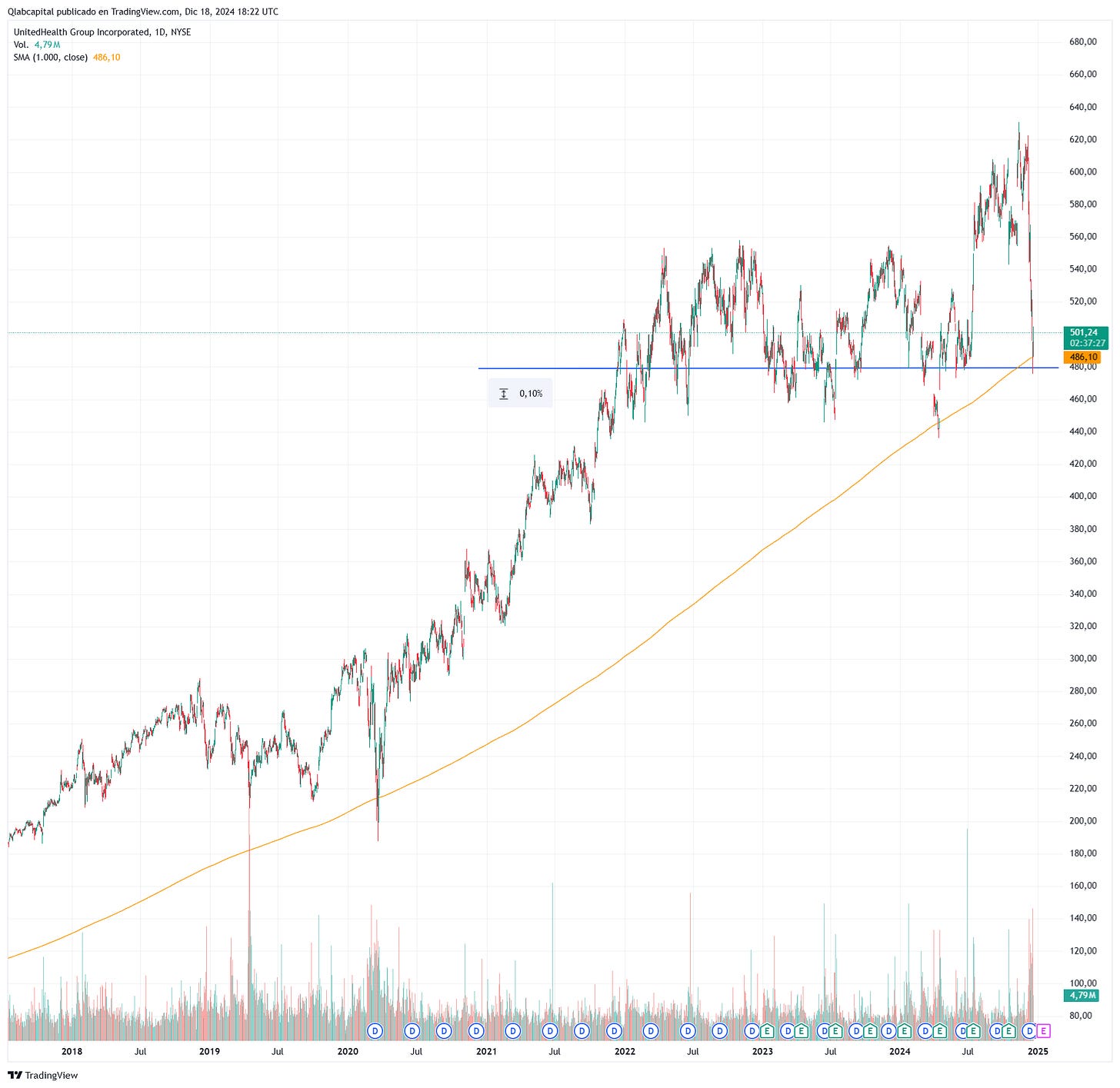 El CEO de la división de seguros de la compañía es asesinado a sangre fría en la conferencia de inversores de la empresa en Nueva York. UNH es una empresa con 440000 empleados y más de 50 millones de clientes. Con un equipo directivo senior, solvente y de una gestión excelente, que lógicamente no depende de una sola persona para funcionar.