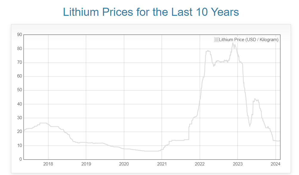 Los ingresos son totalmente dependientes del precio del litio, el cuál es altamente volátil e impredecible. Lo que quiere decir que el precio del litio podría caer bastante más si empeora la situación económica por ejemplo.